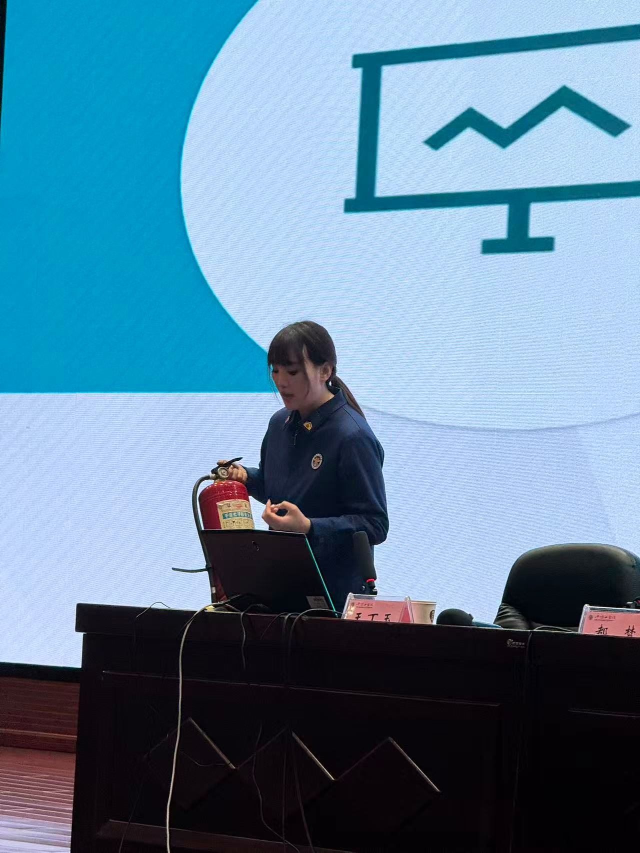 消防员讲解灭火器使用方法