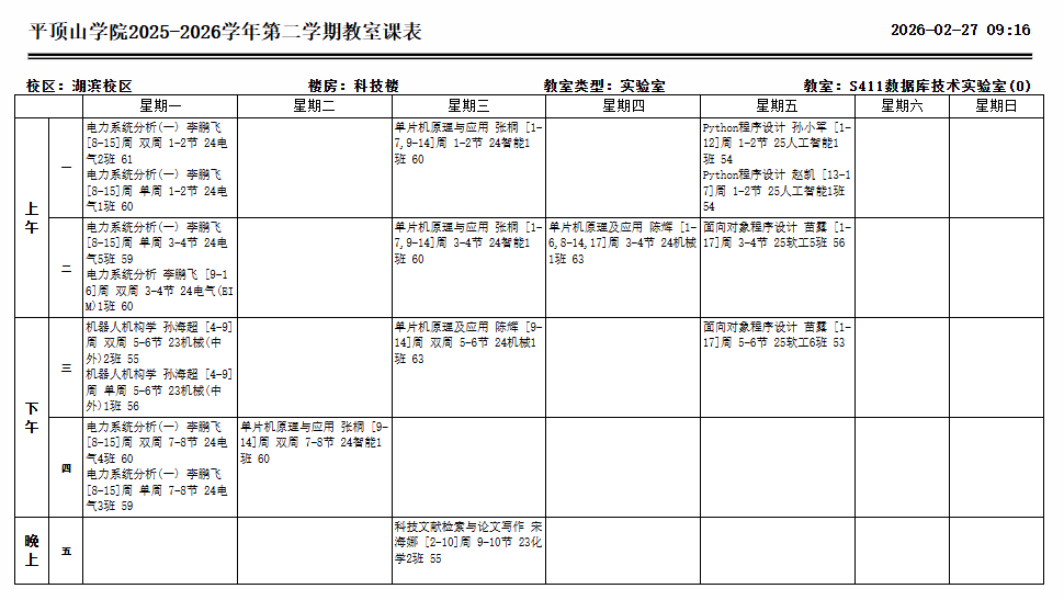 数据库技术实验室承担的课程有:《电力系统分析》、《机器人机构学》、《单片机原理与应用》、《Python程序设计》、《面向对象程序设计》等。